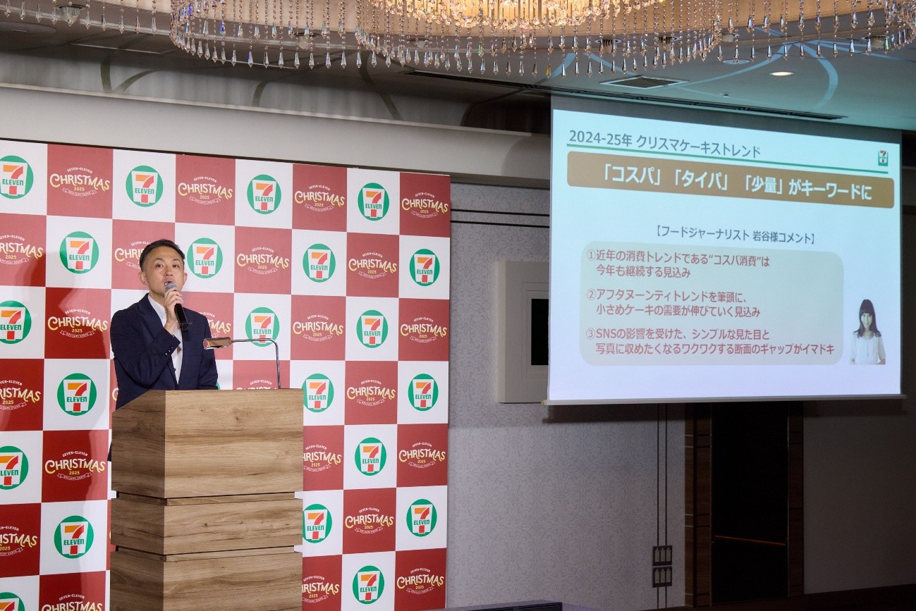 来月に迫ったクリスマスに向け、2025年11月5日(水)、セブン-イレブン・ジャパンにて「おうちクリスマス」をテーマにした、新商品の発表会が開催されました。