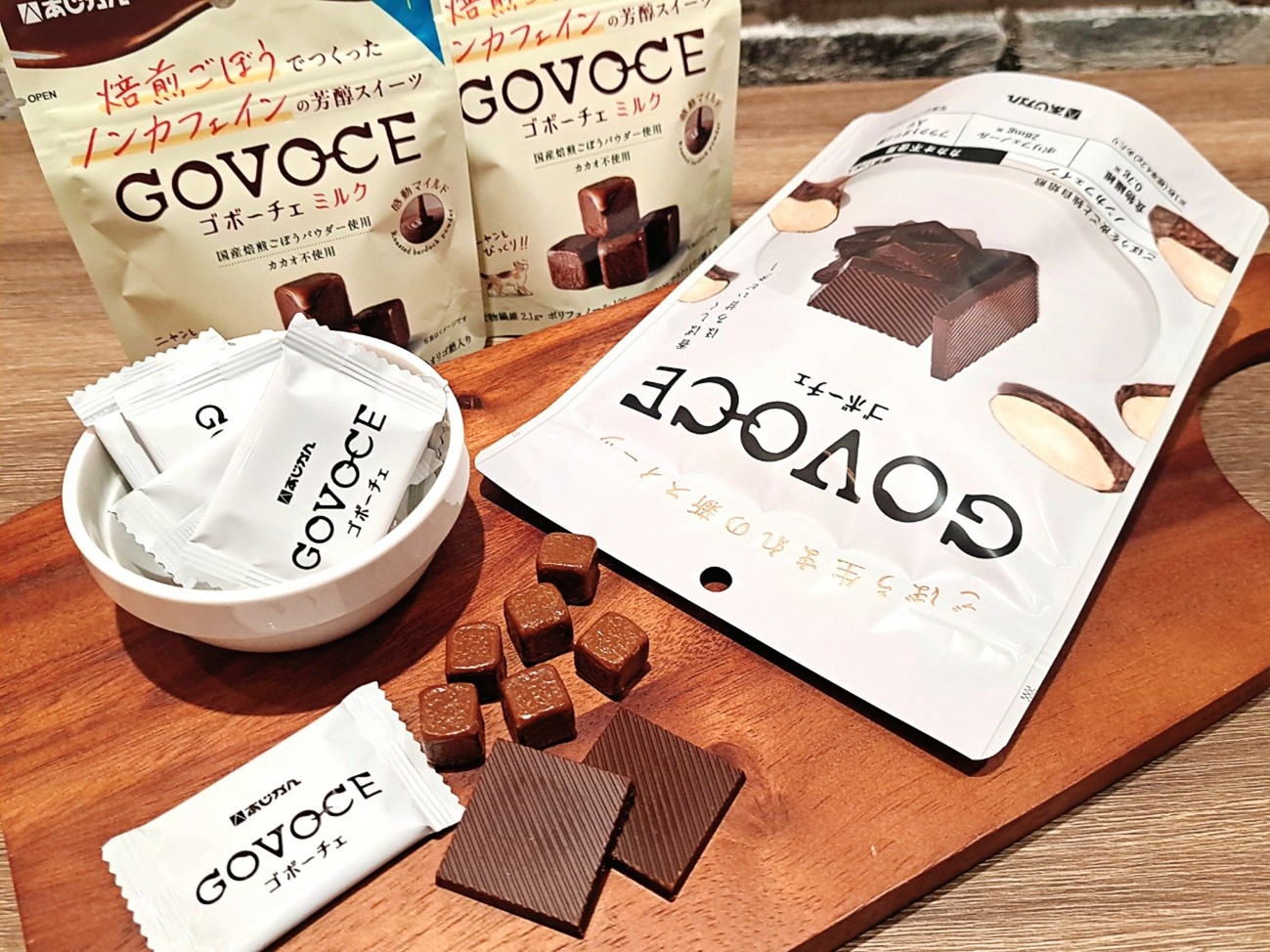ごぼうラバーな方には、ごぼう風味が豊かな「GOVOCE」。スイーツラバーな方には、よりチョコレートらしく仕上がった「GOVOCE ミルク」がオススメですよ。