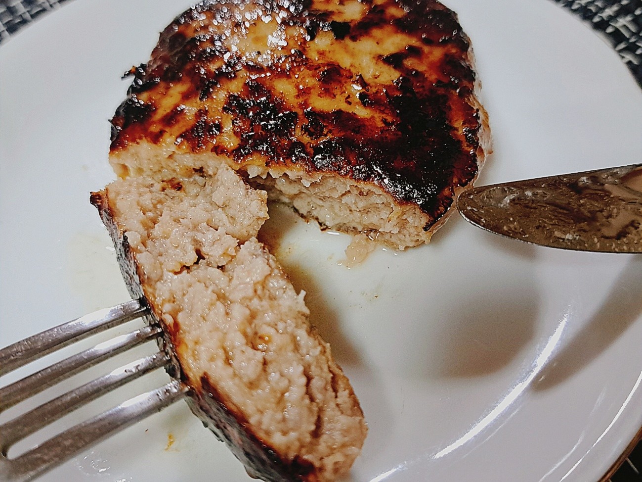肉にこだわったレストランやECを展開する肉の名店「格之進」と「ベイシア」の共同開発商品で、肉汁あふれるふんわり食感を目指した、肉屋こだわりの冷凍生ハンバーグになっています。