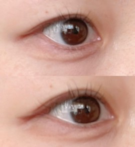 少々わかりづらいですが上が、黒目下のまつ毛の部分に軽く引いた様子で、下が目尻に引いた様子です。