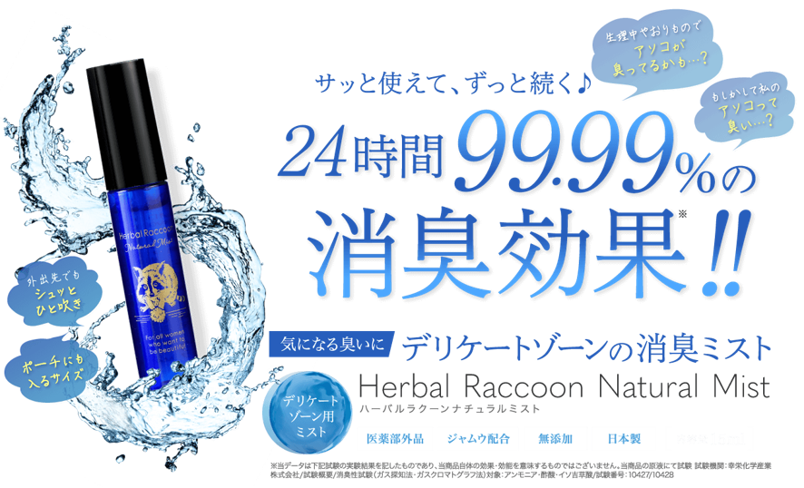 ハーバルラクーンナチュラルミストは、数少ない貴重な「デリケートゾーン用の消臭ミスト」のひとつ。
