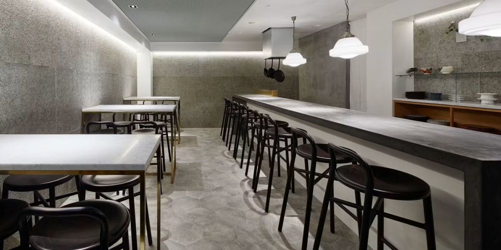 店内はデザイナーが手掛けたシックな雰囲気の内装となっていて、串揚げや揚げ物をカジュアルに楽しめます。