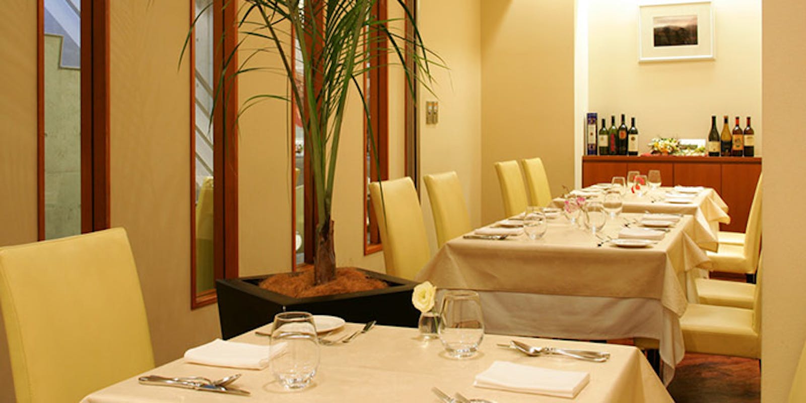 店内は、ホワイトとイエローをベースとした明るく温かみのある雰囲気となっています。デートだけでなく、少人数のパーティーにも使いやすいでしょう。