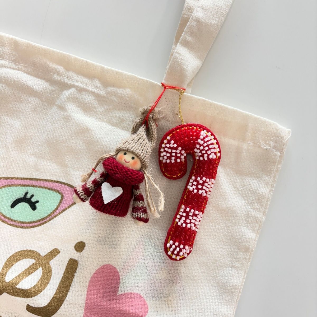 Xmasニッセといっしょに紐やストラップにオーナメントを引っかけて、お手軽キーホルダーとして楽しんだり、ギフトタグのようにプレゼントにくくりつけけると、ラッピングが一気に可愛くなりますよ。