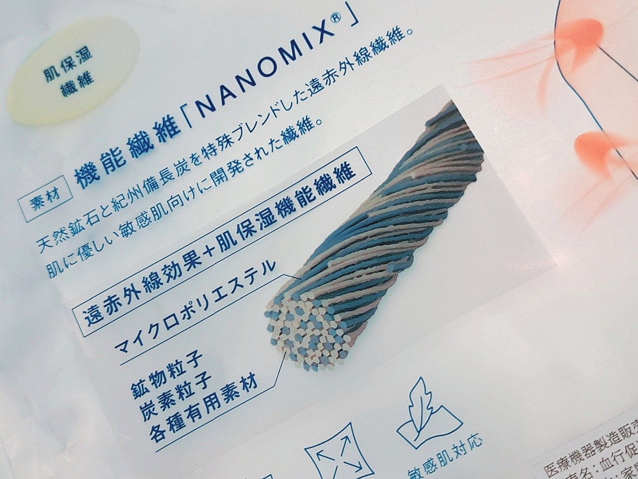 「YOKUNERU」には、天然鉱石(トルマリン)と紀州備長炭を特殊ブレンドした遠赤外線繊維「NANOMIX®」※注4が採用され、体の熱を赤外線へ変換し、肌や筋肉へ届き血流を促進します。それによって体が温まったり、肩凝りなどの軽減に期待ができます。