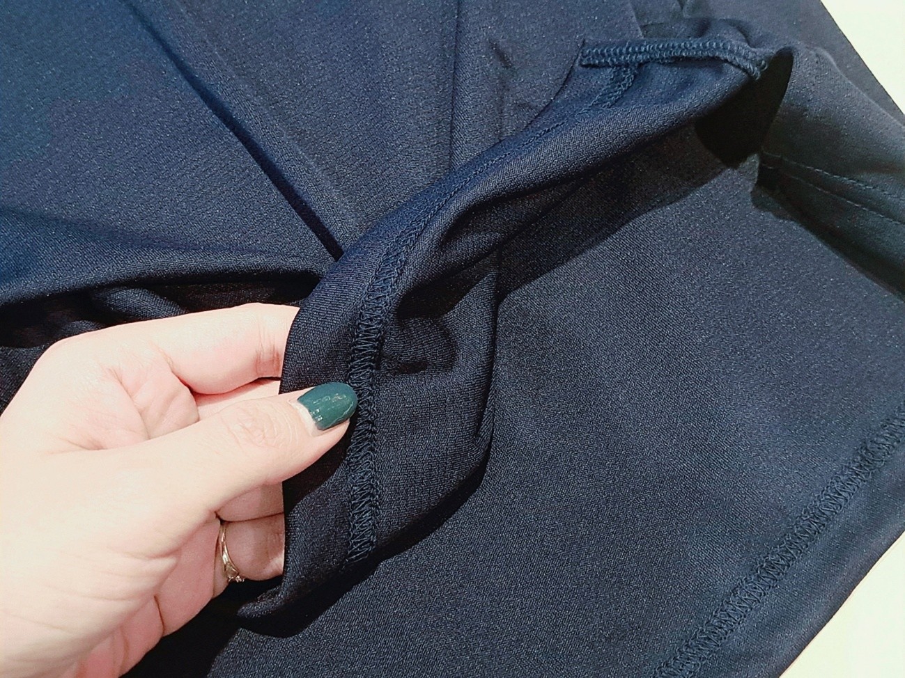 最初に「生地がすっごく薄い!」という点にまずびっくり。到着前にも口コミなどで「薄い」という情報は得ていたのですが、想像以上の薄さです。やや厚手のカットソーくらいの生地感なので、「本当にこれでポカポカするのかな?」とちょっと半信半疑。