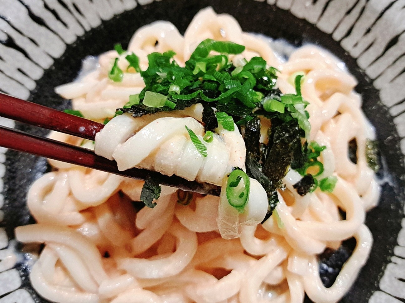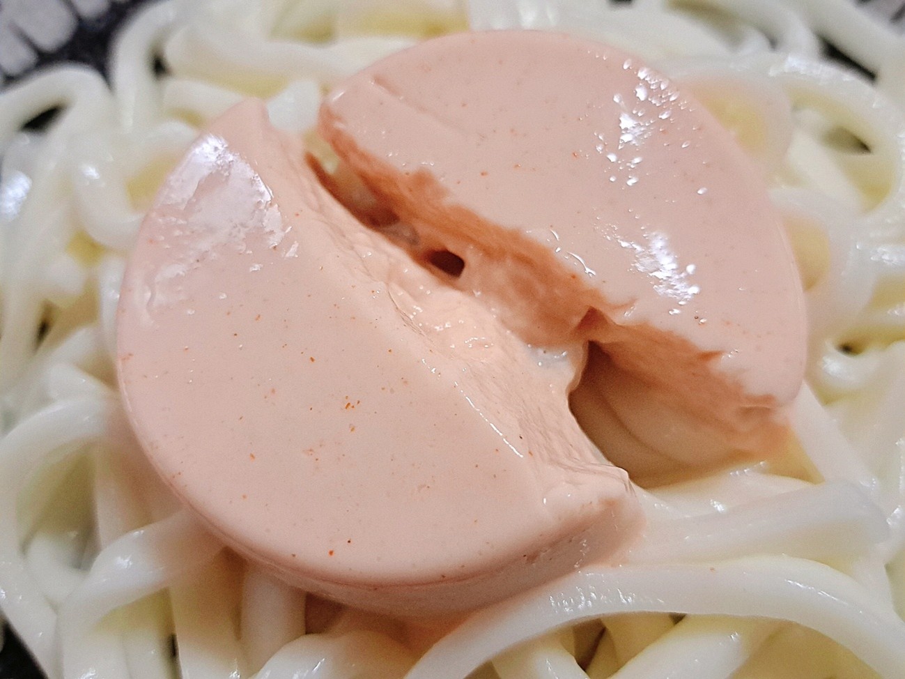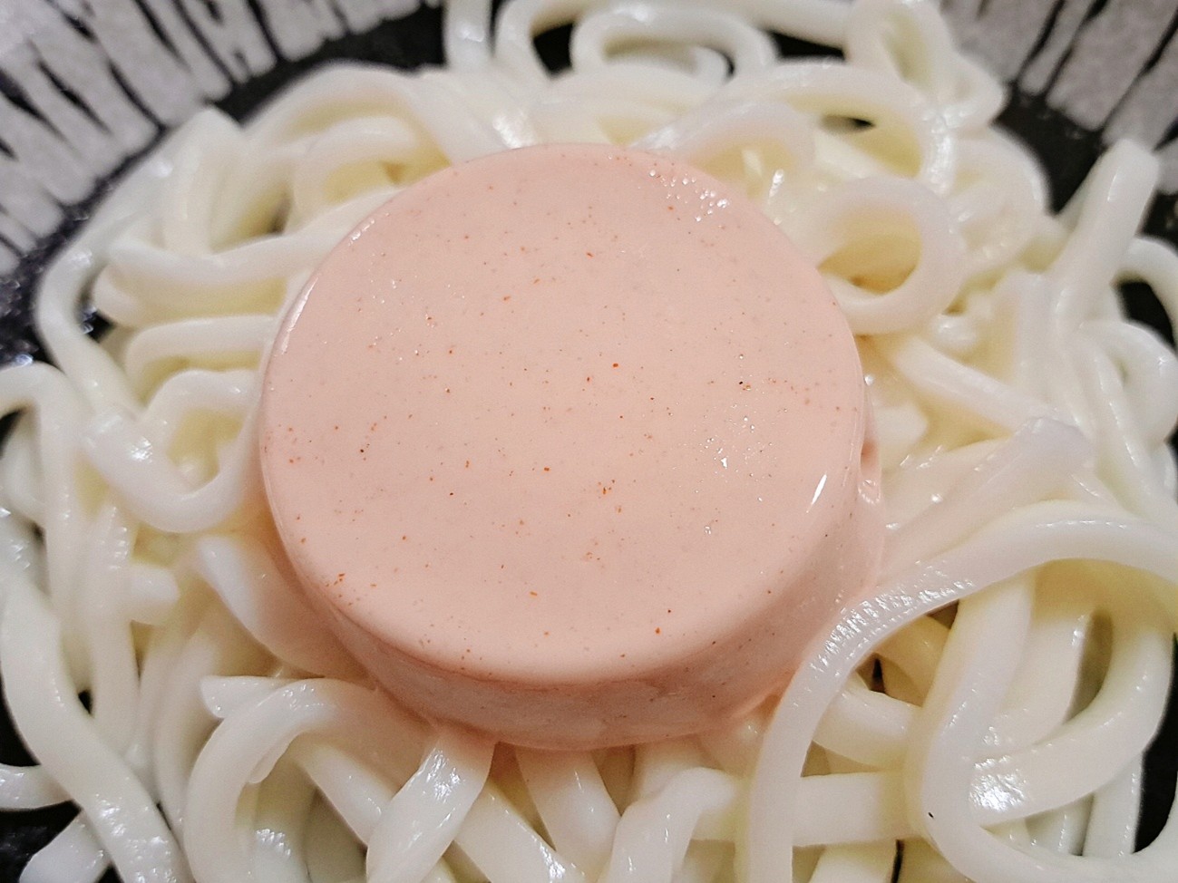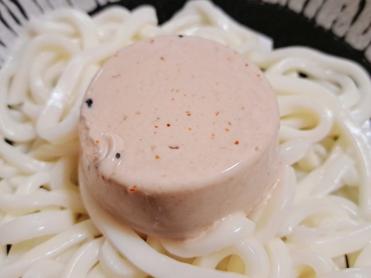 まぜる前までは「豆腐って麺に絡むのかな」と思っていたのですが、通常の豆腐よりもクリーミーなため細かく混ざり、しっかりうどんに絡みました。