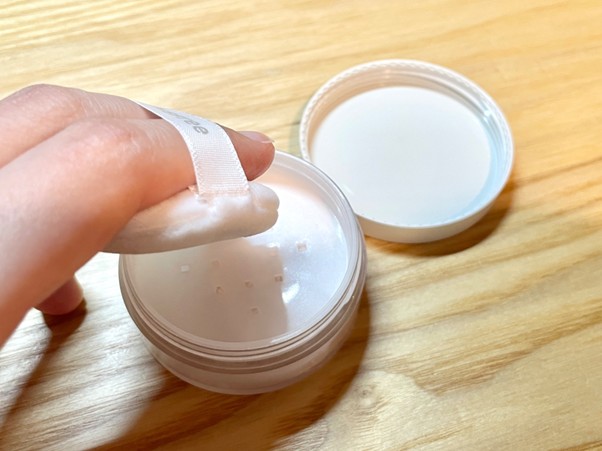 パフを取り出すと、お粉が見えてきます。