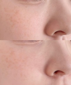 (上がビフォーで下がアフター。肉眼で見ると自然な影になっています)