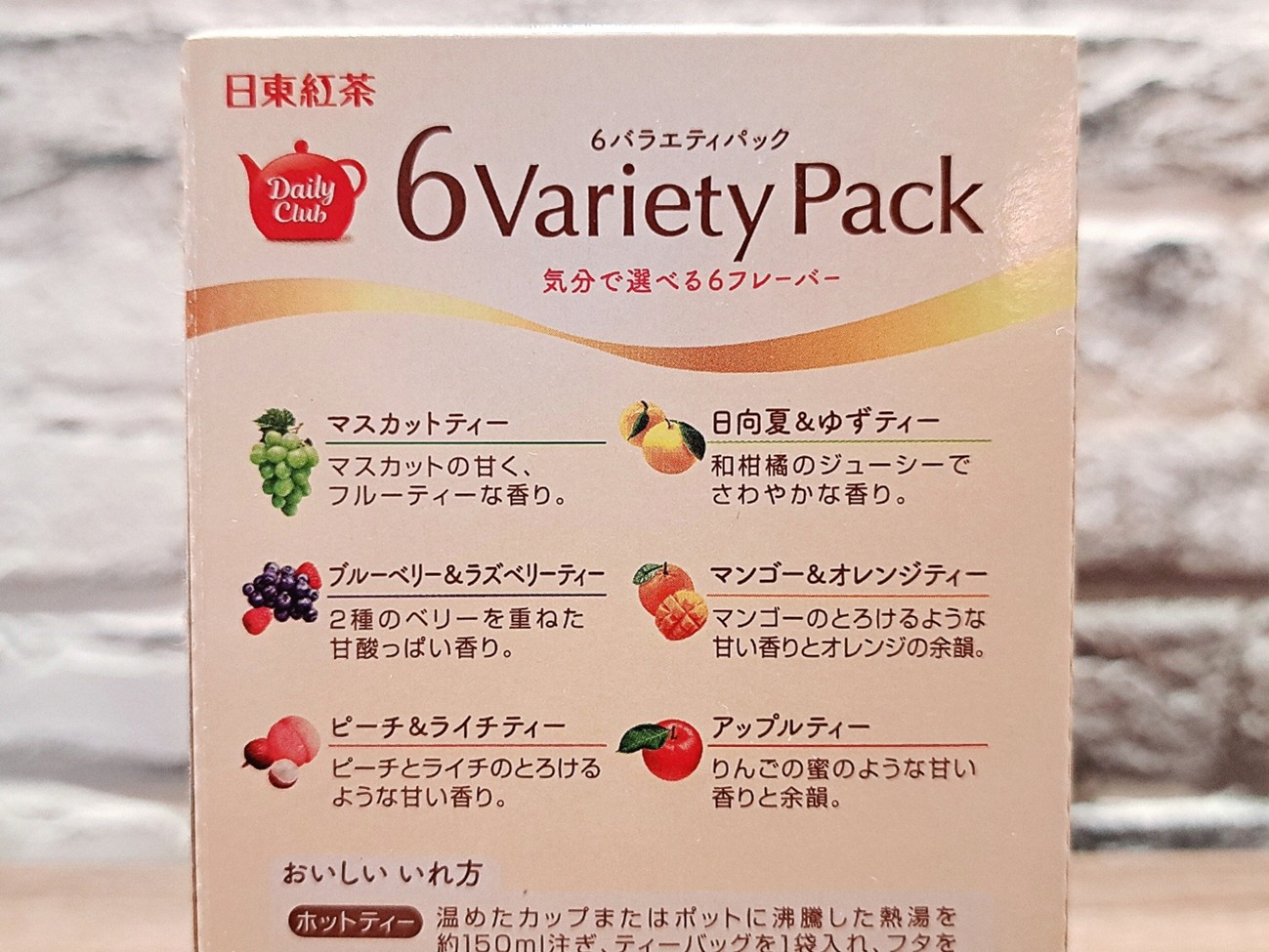 気分でフレーバーが選べるということで、根強い人気の「デイリークラブ6バラエティパック」に、新しくマスカットティーが加わりました。