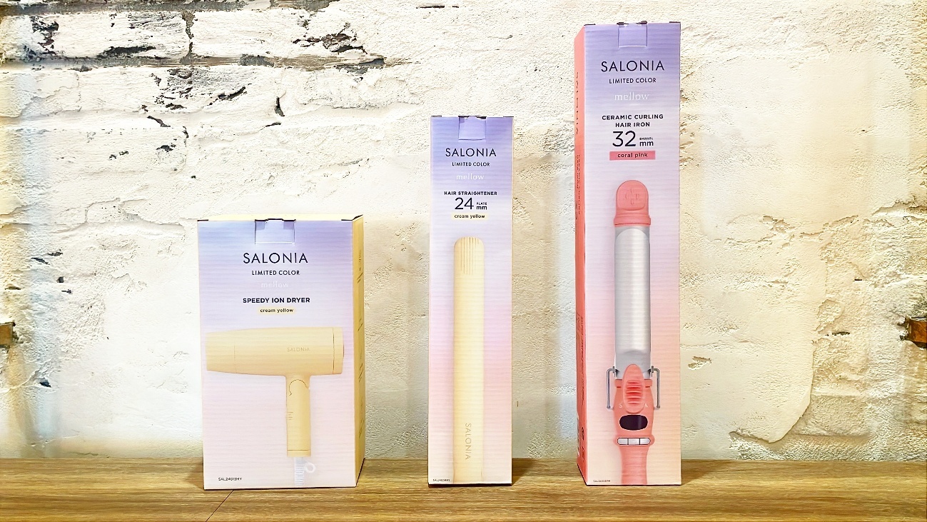 今回は、SALONIA(サロニア)の新カラーアイテム「スピーディーイオンドライヤー」「ストレートヘアアイロン」「セラミックカールヘアアイロン」をご紹介しました。