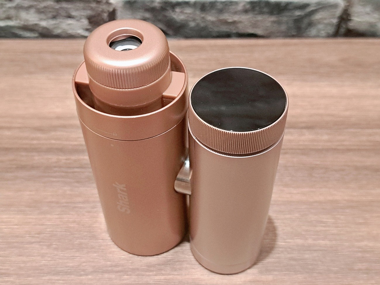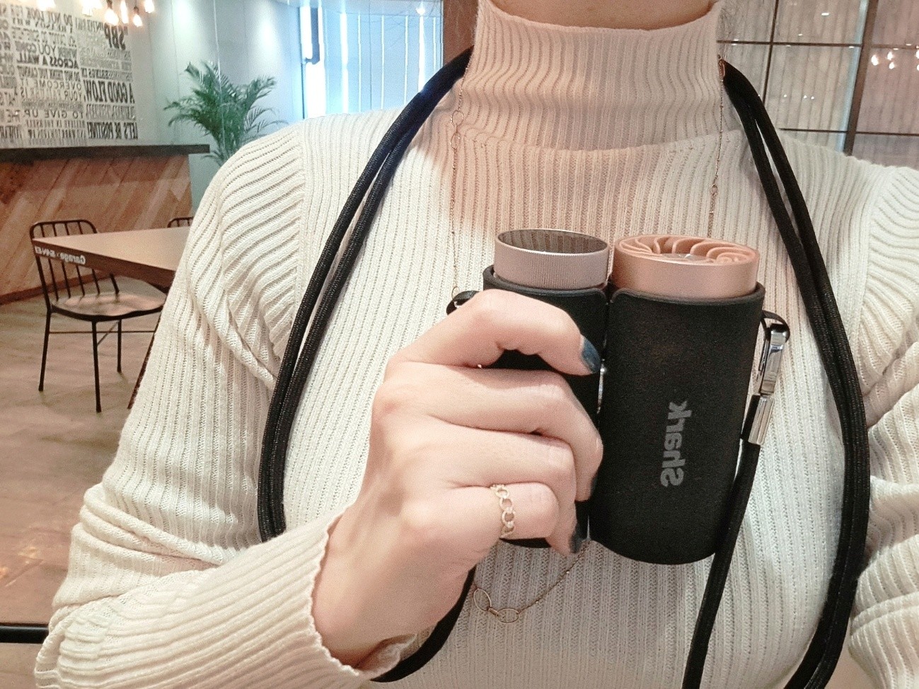 手に取ったときは双眼鏡のような形になっており片手で持ちやすく、くるんと回すと卓上にも置きやすいです。外出時だけでなく、オフィスなどでも使いやすいのがGOOD!