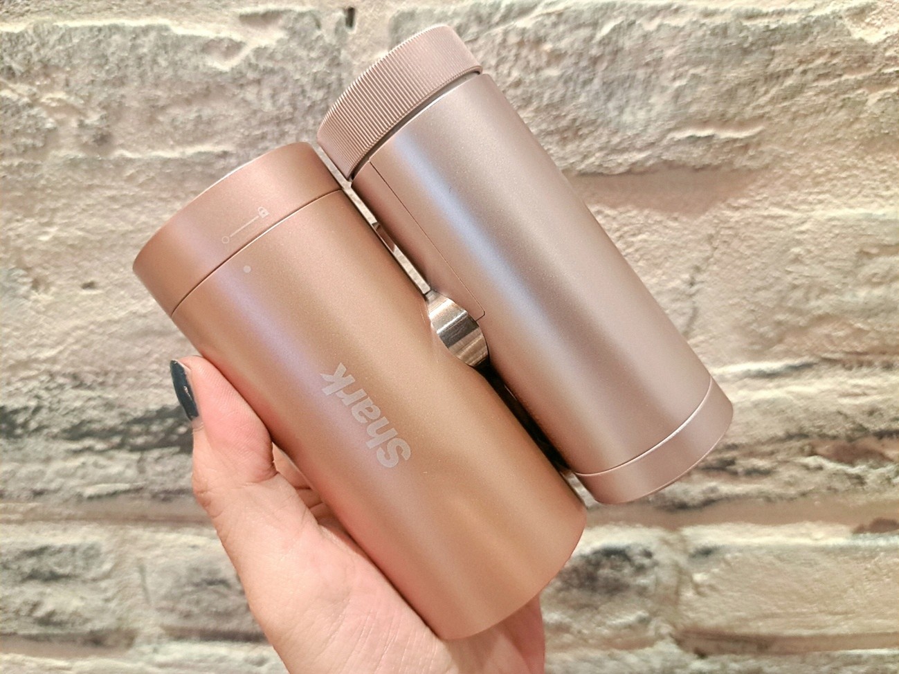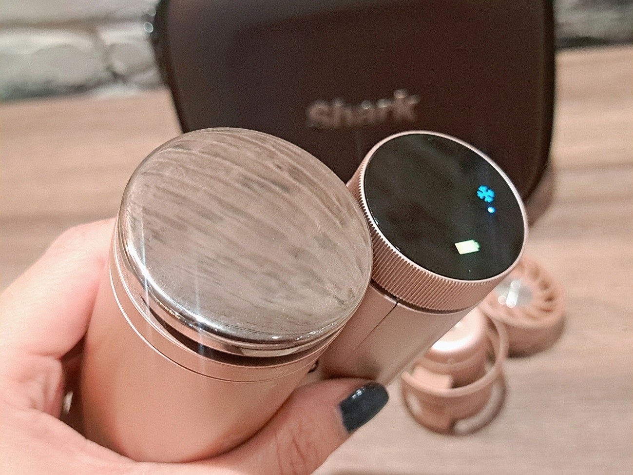 そんな「Shark®」の中で今注目を集めているのが、3wayハンディファン「Shark® ChillPill パーソナルクーリングファン」です。今回は、ローズ・ベージュ・チャコールグレー・ホワイト・ターコイズブルー・ピンクの6色のカラバリから、オトナ可愛い「ローズ」を選びました。