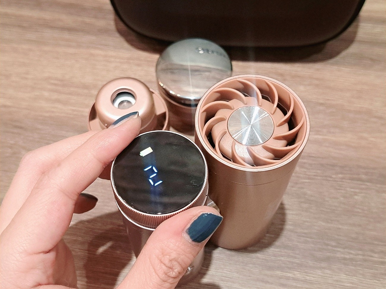 メタリック感はありつつも、控えめなローズピンクといった感じでとっても可愛い!扇風機感が全くなく、スタイリッシュなデザインとカラーになっています。