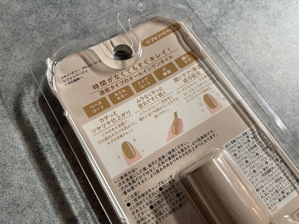 力不足でなかなか難しいなと思ったものの、何度か試してみると1度塗りの「素爪がキレイな人」感に病みつきになっていきました。おそらくシフォンベージュが筆者の肌には合いづらかっただけで、他のカラーだとより馴染むのではないかと思います。