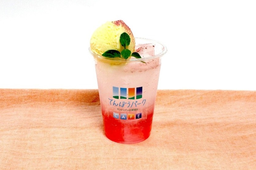 また、夜間限定で販売される、光を灯す4色のドリンク「花灯す夜桜ソーダ」もとってもキレイ!夜景をバックに映え写真が撮りたくなります。