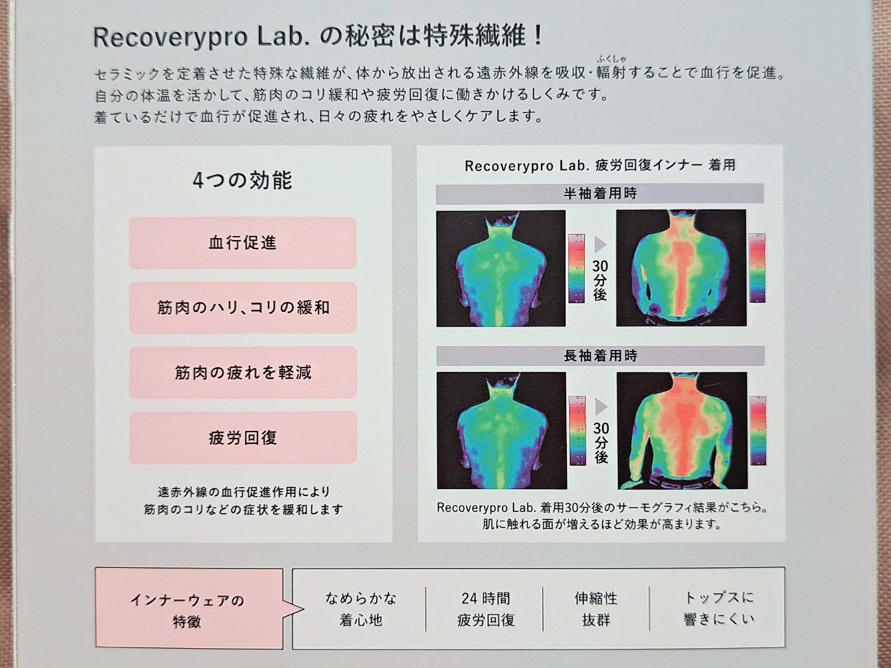 今回は、「Recoverypro Lab. 疲労回復ウェア 上下セット」と、「Recoverypro Lab. 疲労回復インナー」の疲労回復の仕組みや、実際に着てみた感想などをシェアしていきたいと思います!