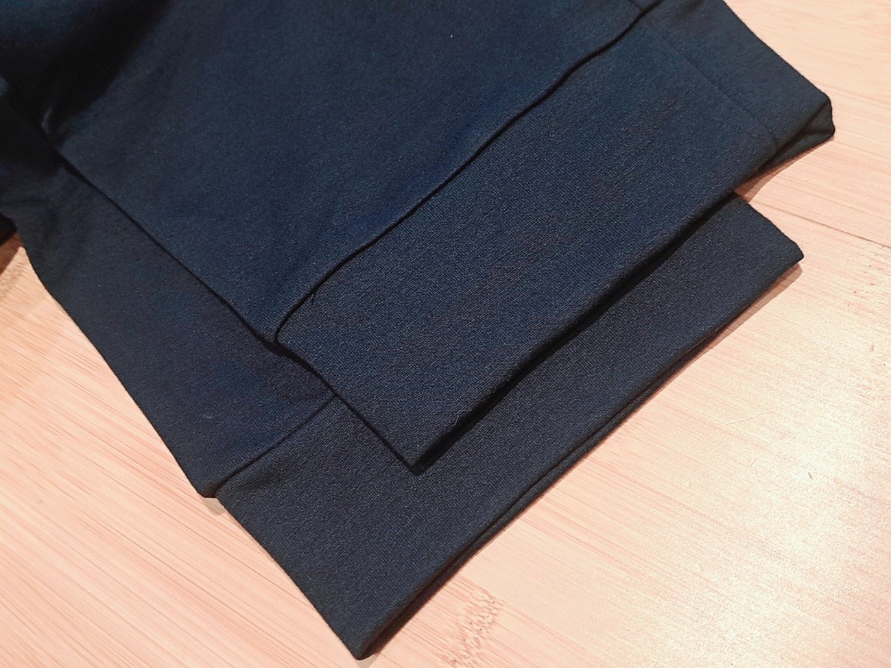 先程の上下セットはポリエステル80%、綿20%でしたが、こちらはポリエステル70%、レーヨン20%、ポリウレタン10%なので、インナーのほうがよりなめらかで伸縮性があるように感じました。