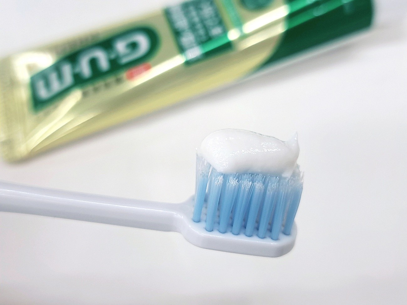 今回は、「ガム・プレミアム デンタルペースト(メディカルハーブミント)」と、「ガム・プレミアム デンタルブラシ(幅広ヘッド/ふつう)」を使っていきます!